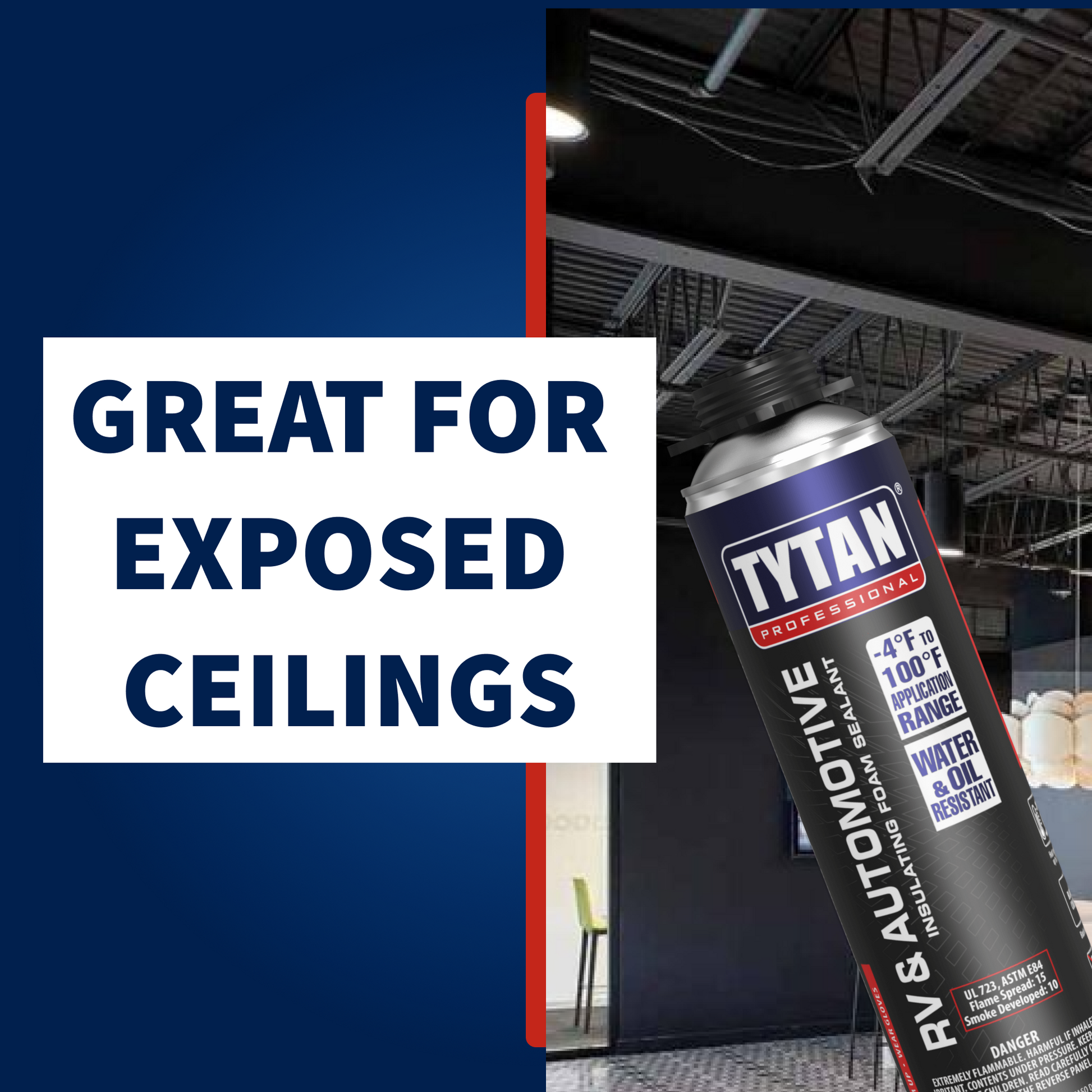 Specially formulated for outdoor use, Tytan Professional RV & Automotive foam is similar to our other foam sealants but is resistant to discoloration from UV exposure. This black foam provides a watertight seal, safe for waterfalls and koi ponds, and is used heavily in the RV industry, where the black color allows it to blend in with rooftops and undercarriages.